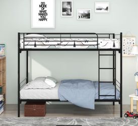 Bed Twin Over Twin, Twin Bunk Beds for Kids/Teens/Adults, Flat Ladder and High Guardrail, Metal Bunk Bed with Stairs, Black$150Rancho Cucamonga, CA