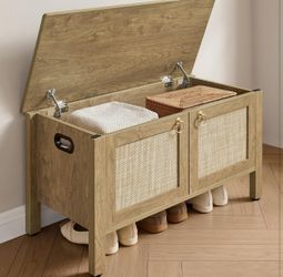 SICOTAS Rattan Shoe Rack Bench with Lift Top Storage: Farmhouse Boho Wide Shoe Cabinet Entryway Bench with Safety Hinges, Wooden Storage Chest for Bed$49Rancho Cucamonga, CA