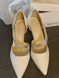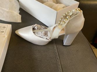 Used Women’s Satin Block Heel Wedding Shoes with All Pearl Ankle Strap - Color: White - Great for special occasions$45Azalea Park, FL