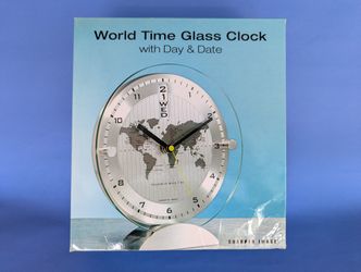 Sharper Image World Time Glass Clock With Day & Date NIB.$15Hialeah, FL