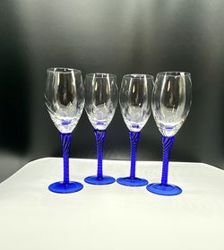 Wine Water Glasses Twisted Blue Stem & Base w/ Clear Swirled Optic Bowl Set of 4$8Tacoma, WA