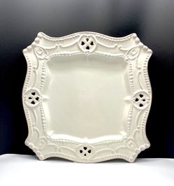 Set Portuguese Design Cream Embossed Dots Heart Cuts Arched Rim 2 Lg & 2 Sm Plates$10Tacoma, WA