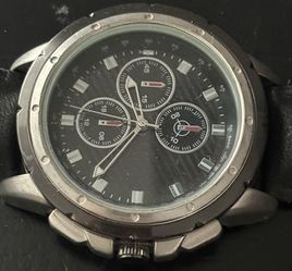 Men's Silver Quartz Chronograph Watch Black Dial Black Leather Strap 44.2mm$40Harker Heights, TX