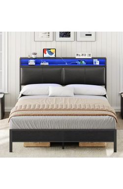 Queen Bed Frame, Metal Platform Bed Frame with Charging Station and LED Light, Headboard with Shelves, No Box Springs Needed, Black $110$110Virginia Beach, VA