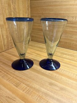 Hand Blown Mexican Cobalt Blue Rim Glasses$10Conroe, TX
