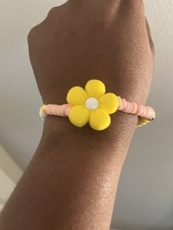 Yellow Daisy Charm Bracelet | Peach Heishi Beads, Gold Accents, Summer Jewelry$5High Point, NC