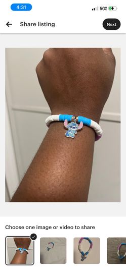 Stitch Charm Bracelet, Blue Pink Heishi Beads, Handmade Stretch Jewelry$7High Point, NC