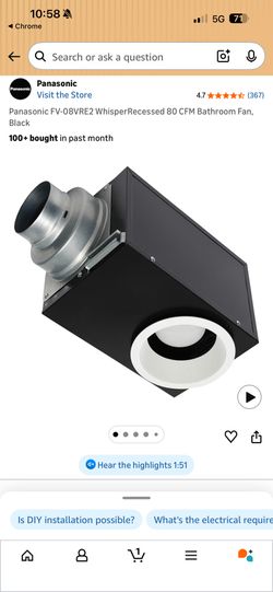 Panasonic FV-08VRE2 WhisperRecessed 80 CFM Bathroom Fan, Black$100San Diego, CA