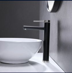 Tall Bathroom Faucet, Brushed Nickel And Black Vessel Sink Faucet Single Hole F 26N $30$30Norwalk, CA