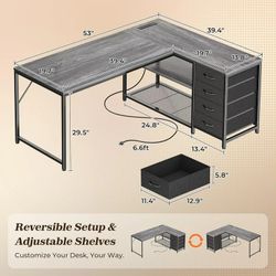 Gray 53 Inch L Shape Desk$95Riverside, CA