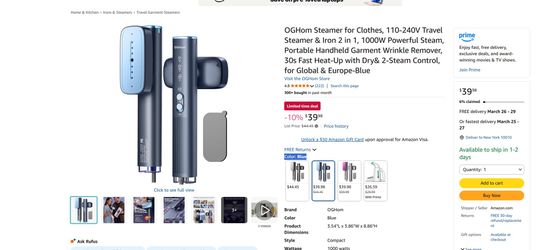 OGHom Steamer for Clothes, 110-240V Travel Steamer & Iron 2 in 1,$20Orlando, FL