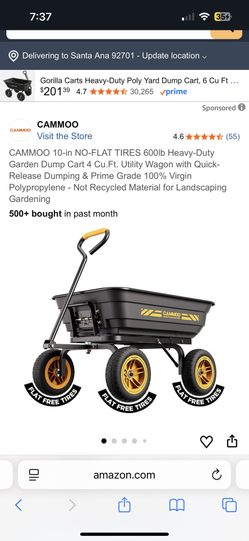 CAMMOO 10-in NO-FLAT TIRES 600lb Heavy-Duty Garden Dump Cart 4 Cu.Ft. Utility Wagon with Quick-Release Dumping & Prime Grade 100% Virgin Polypropylene$90Santa Ana, CA