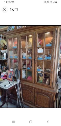 BROYHILL China Cabinet 2-piece Lighted Oak 7' Tall$300Augusta, GA