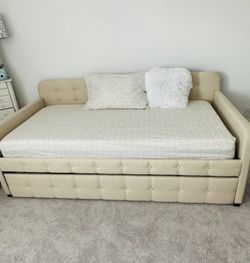 Moving sale twin Upholstered beige Daybed with Trundle Box with one mattress$400Richmond, TX