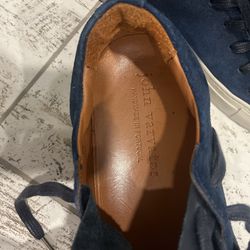 7.5 Preowned without original box. John Varvatos Reed Low-Top Sneaker in a blue suede. The style number is F2754V2.$0Laud Lakes, FL