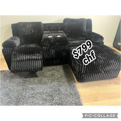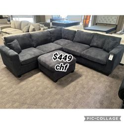 Black corduroy sectional sofa with ottoman // Year End Sale !$449Riverside, CA