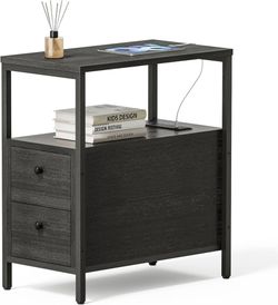 Side Table with Charging Station, Narrow Nightstand with 2 Drawers, Living Room End Table with Storage, Slim Bedside Table for Small Spaces, Black$40Monterey Park, CA