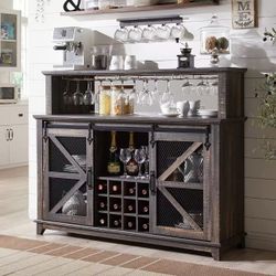 Farmhouse Coffee Bar Cabinet with Wine Rack and Storage, Barn Door Buffet Cabinet Storage Kitchen With LED Light & Adjustable Shelves, Dark Rustic Oak$120Monterey Park, CA