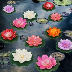 Happy Trees 12 Pcs Artificial Floating Foam Lotus Flower With Water Lily Pad, Lifelike Ornanment Home Garden Pond Decor$8Las Vegas, NV