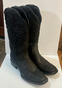 WOMENS JB DILLON COWBOY INLAY BLACK BOOTS SIZE 11B Glittery design Square Toe$65Cantonment, FL