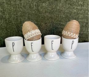 Rae Dunn Farmhouse P-E-E-P Egg Cups Easter Decor Set Of 4$8Rialto, CA
