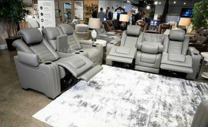 Party Time Backtrack Gray Real Leather Genuine Leather Power Electric Reclining Sofa And Loveseat Home Decor Outdoor Patio Other $4,680Manassas, VA