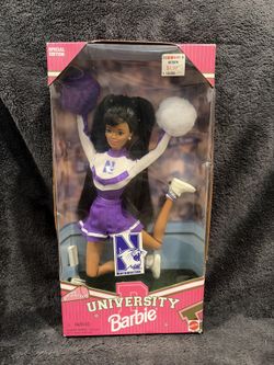University Barbie 1996 Northwestern Cheerleader Doll Mattel Collegiate Licensed NIB$35Chico, CA