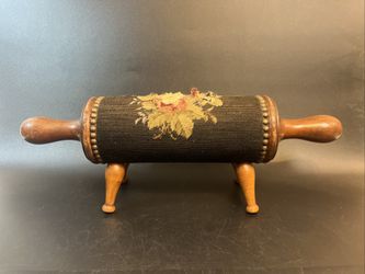 Antique Wood Rolling Pin Foot Stool Rest Embroidered Needlepoint Floral Green$80Lake Stevens, WA
