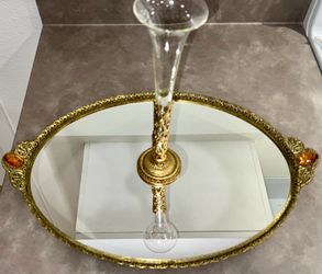 🌸Hollywood Regency Vanity Tray Gold Filigree Amber Stones & Matching Vase Vintage$110Los Angeles, CA