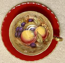 Aynsley Mid-Century 1034 Orchard Fruit England Fine Bone China Peaches Red 24KT Tea Cup & Saucer Set 30s-60s$70Los Angeles, CA