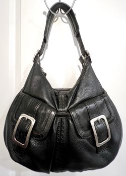 🌸COLE HAAN Y2K Large Black Leather Hobo Shoulder Bag Silver Buckle Flap Pockets Purse$115Los Angeles, CA