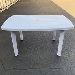 (NEW) $19 Large Plastic Table Outdoor Furniture w/ Hole for Patio Umbrella 54x33x28 inches $19Cty Of Cmmrce, CA