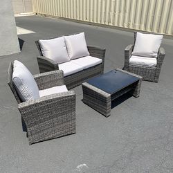 (New) $295 Outdoor 4 Piece Wicker Rattan Funiture Set (Sofa, 2 Chair, Table) $295Cty Of Cmmrce, CA