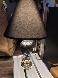 Shaped Ceramic Table Lamp with Linen Shade in Black (Light bulb included )