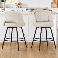 Set 2 Counter Height Bar Stools, 26" Swivel Fabric Upholstered with Backs, for Kitchen Island, Beige$100Chino Hills, CA