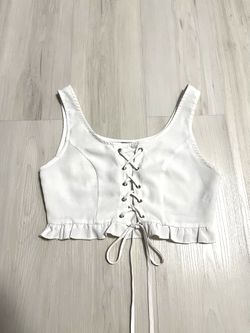 White Lace Up Ruffle Hem Crop Top$9Pinellas Park, FL