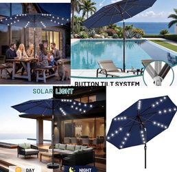 9' Solar LED Lighted Patio Umbrella with 8 Ribs/Tilt Adjustment and Crank Lift System$45Rancho Cucamonga, CA