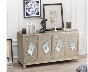 4 Door Mirrored Buffet Cabinet, Retro Sideboard Entryway Console Table Accent Cabinet with Shelves for Bedroom, Living Room, Office, Easy Assembly,$80Rancho Cucamonga, CA