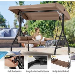 3 Seat Outdoor Porch Swing with Adjustable Canopy, Convertible Patio Swing Bed with Stand, Patio Glider Swing with Upgraded Cup Holder, Thicken Cushio$180Rancho Cucamonga, CA
