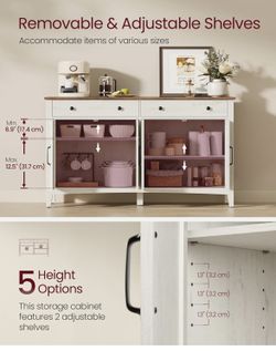 Buffet Cabinet, Coffee Bar Cabinet with 2 Drawers, Adjustable Shelves, Sideboard Storage with Cable Holes, Drawer Dividers, Rustic White and Honey Bro$120Rancho Cucamonga, CA