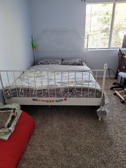Wrought iron queen bed. Looks new. White. + Mattress MOVING SALE $75Irvine, CA