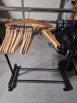2 Tier Adjustable Cloth Hanger + Wooden W Clips & Plastic Hangers $15Irvine, CA