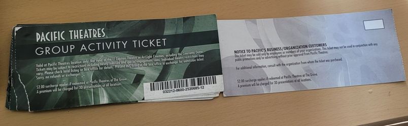 PACIFIC THEATERS TICKET 🎟 VOUCHERS$60San Fernando, CA