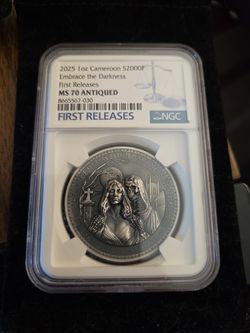 1 Troy Ounce 999 Silver MS70 Graded Antiqued Embrace The Darkness First Releases$200Arlington Heights, IL
