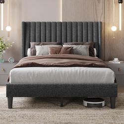 Yaheetech Bed Frame Upholstered Platform Bed with Fabric Headboard, Dark Gray.$105Corona, CA