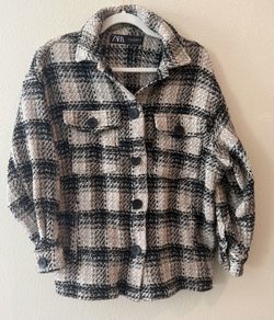 ZARA Tweed Plaid Button Up Shacket Sz M Shirt Jacket Oversized Ivory & Black$15Simi Valley, CA