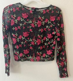 Forever 21 Black sheer long sleeved shirt w/ floral embroidery. Size L$12Simi Valley, CA