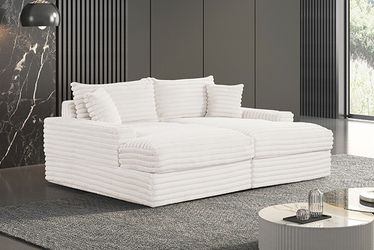 Versoix White Padded Chenille Double Chaise Couch Lounge Sofa Love Seat w/ USB$1,000Garden Grove, CA