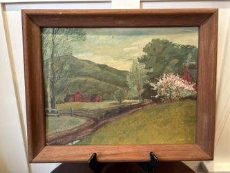 Vintage 1962 Framed Oil Painting of Country Scene with Red Barn by artist Taylor$100Seattle, WA