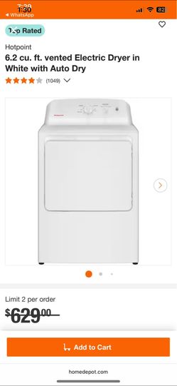 New in box 6.2 cu. ft. vented Electric Dryer in White with Auto Dry$199Fair Oaks, CA